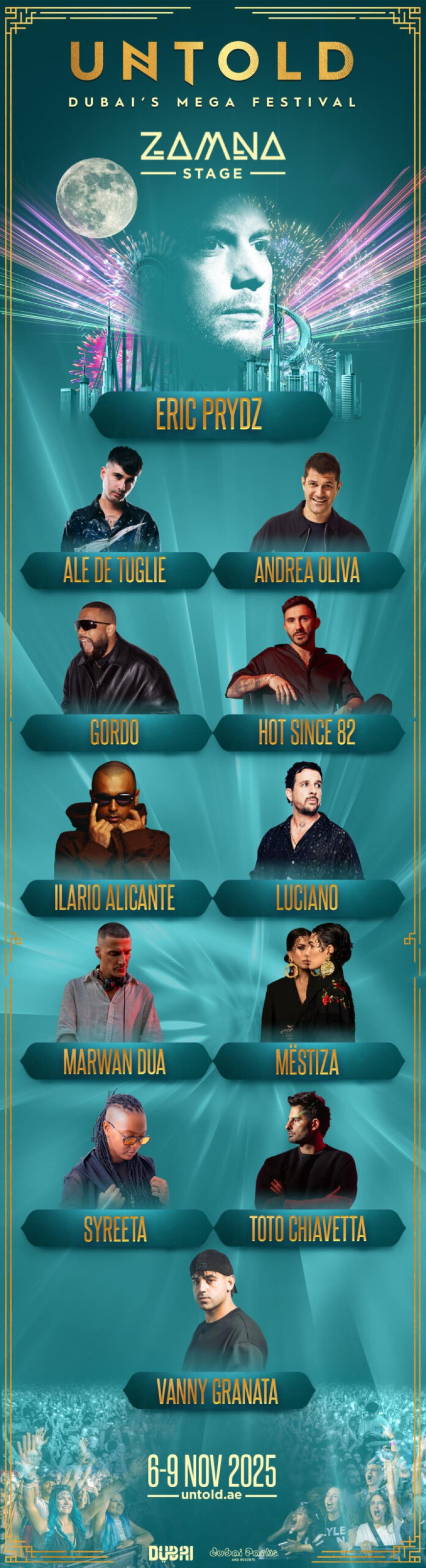 Dubái, EAU – UNTOLD Dubai, uno de los festivales de música más destacados del mundo, ha anunciado que Zamna, la reconocida marca nacida en Tulum, México, será la anfitriona oficial del Escenario Galaxy en su próxima edición, que se llevará a cabo del 6 al 9 de noviembre de 2025 en Dubai Parks and Resorts. Esta colaboración, en alianza con el Departamento de Economía y Turismo de Dubái, promete transformar el festival en una experiencia musical y cultural sin precedentes.